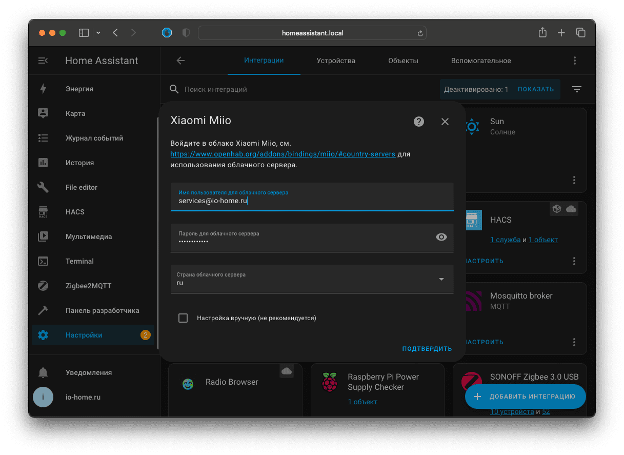 Раньше, чтобы добавить устройство необходимо было узнавать его auth key. Сейчас интерфейс максимально упростили. Вам достаточно ввести логин и пароль от своего аккаунта. Интеграция сама сможет получить ключ авторизации.